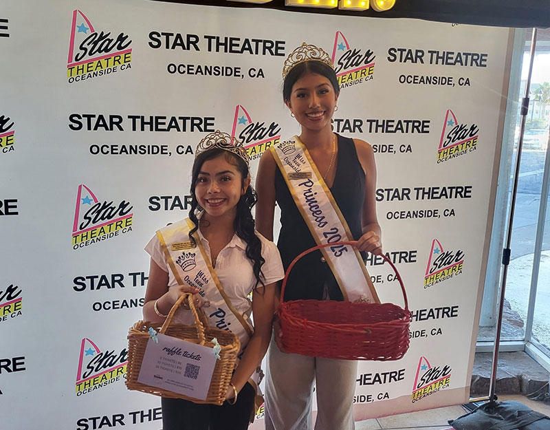 Oceanside Chamber Business mixer at the Star Theater with Miss Teen Oceanside Princesses Kayla Chavez and Adriana Milan Solorio. The girls were selling raffle tickets raising money for the Rising Star Scholarship Program. Thank you girls.