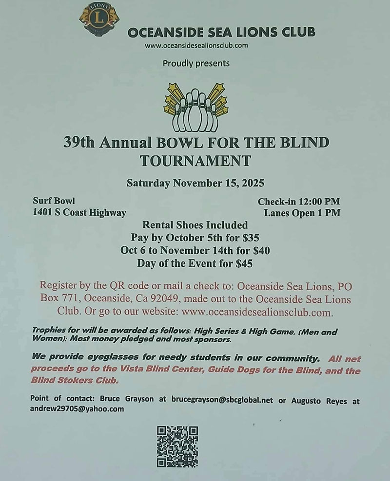 and Oceanside Sea Lions Club. Our next annual fundraisers